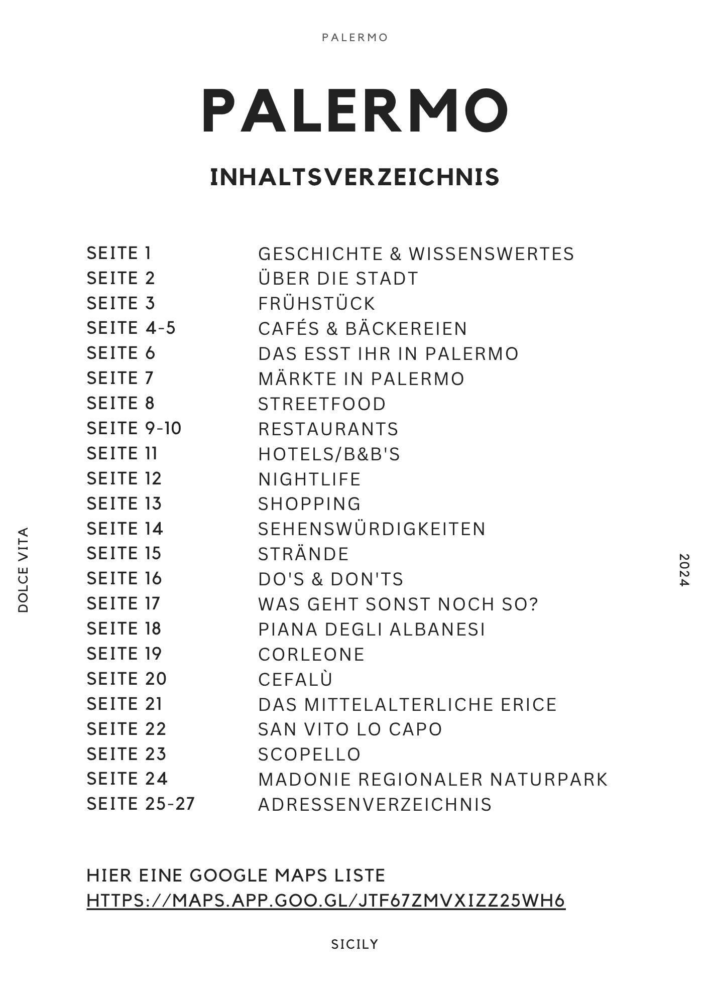 Erlebe Palermo wie ein Einheimischer. In diesem PDF-Guide findest du meine persönlichen Highlights: authentische Restaurants, charmante Bars und Cafés sowie die schönsten Strände rund um Palermo und Cefalù.