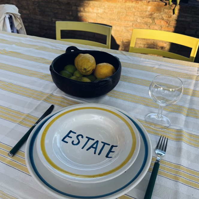 Der Teller trägt die Aufschrift "Estate", was auf Italienisch "Sommer" bedeutet – und genau das bringt er auf deinen Tisch: die Wärme und Freude des italienischen Sommers.