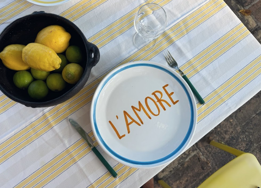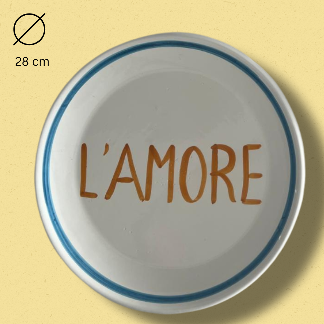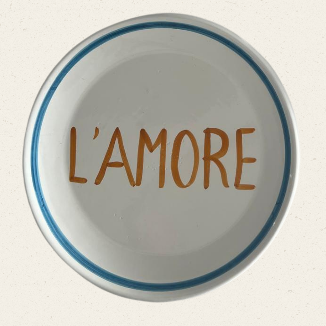 Ein Teller wie ein Liebesbrief aus Italien. Der Schriftzug „L’AMORE“ in der Mitte steht für Liebe zu gutem Essen, schönen Momenten und dem Leben selbst.